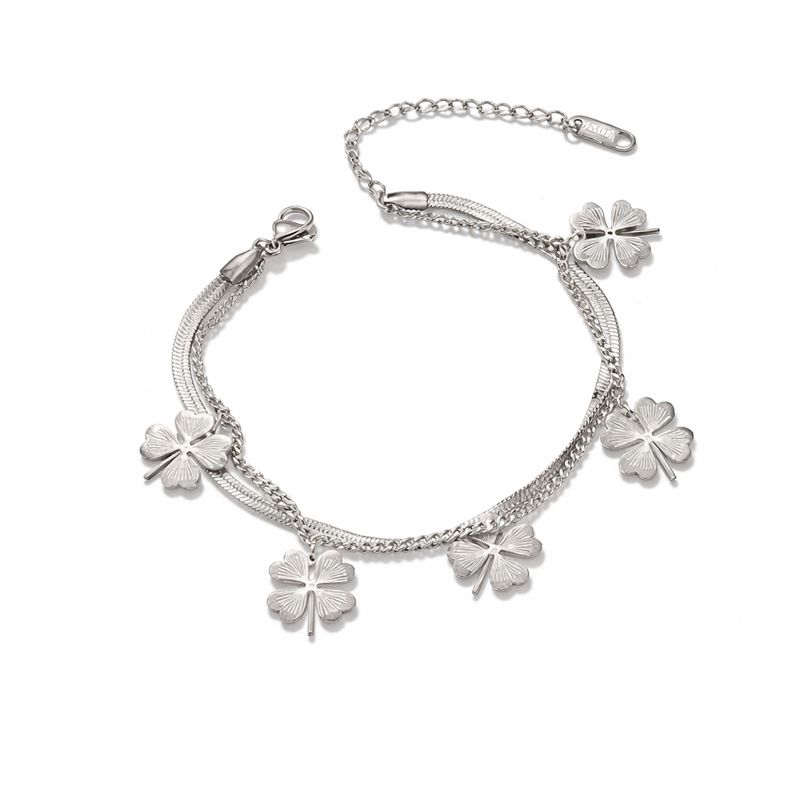 Bracelete italiano em aço inoxidável de alta qualidade com trevos de quatro folhas para trazer sorte.